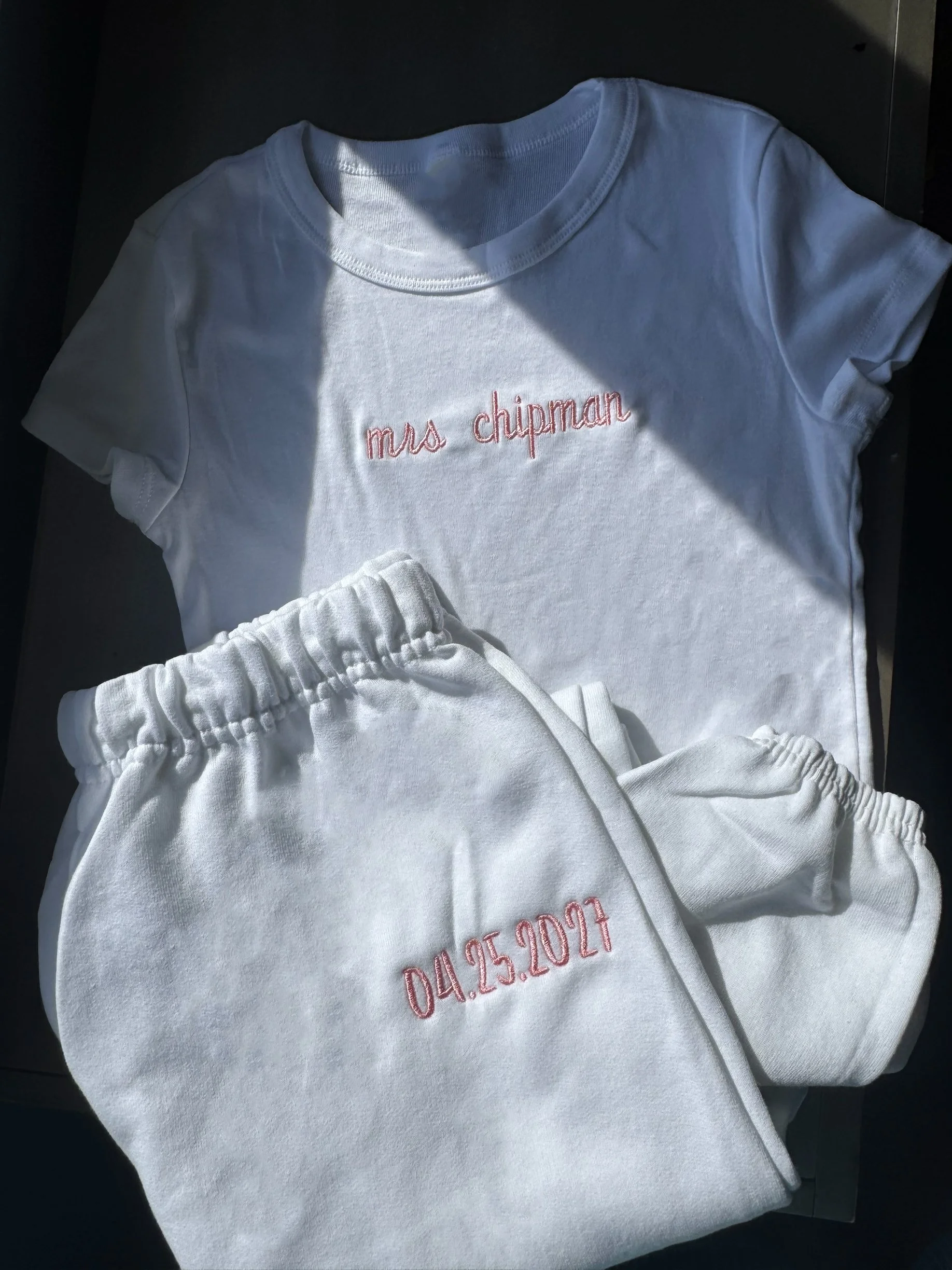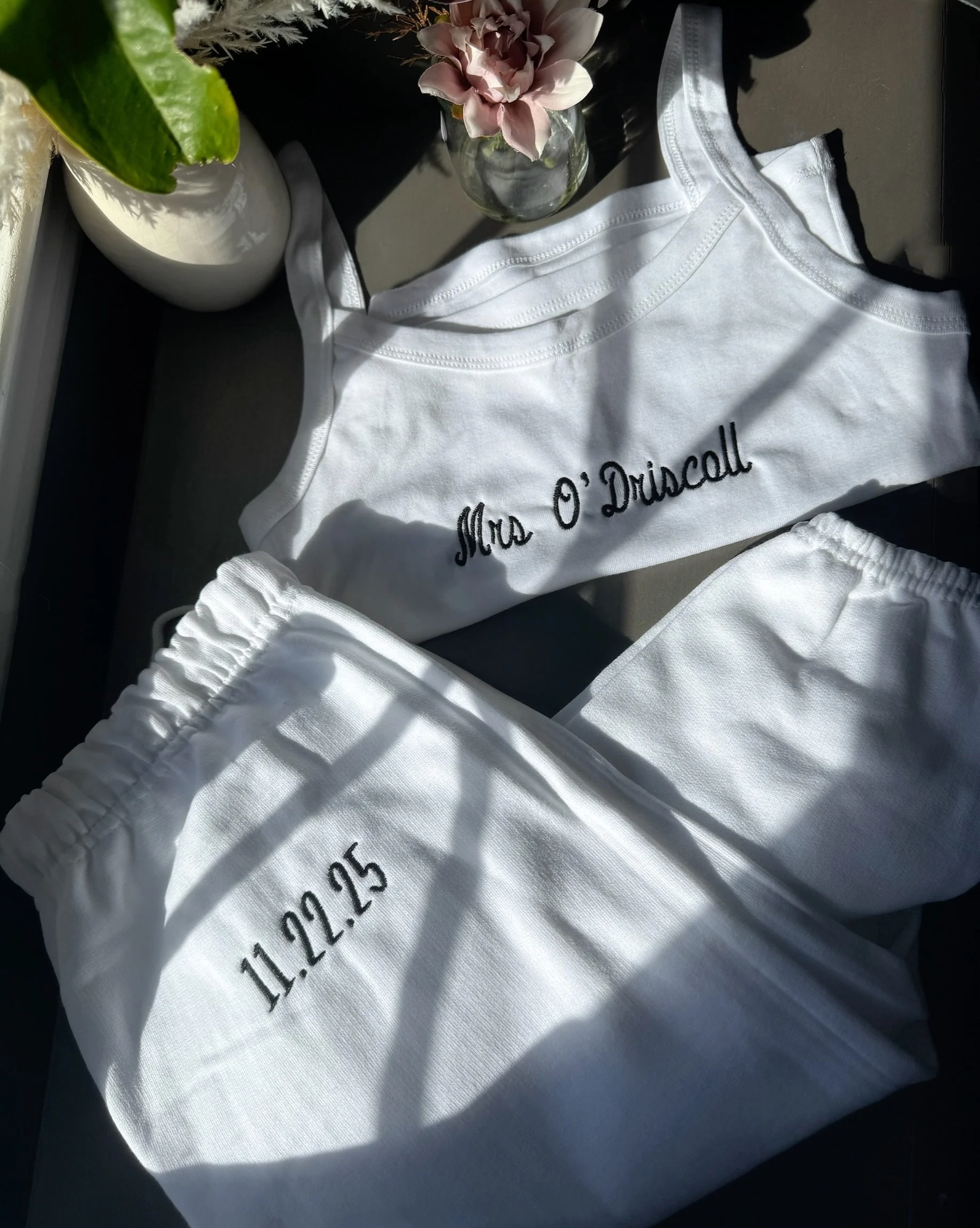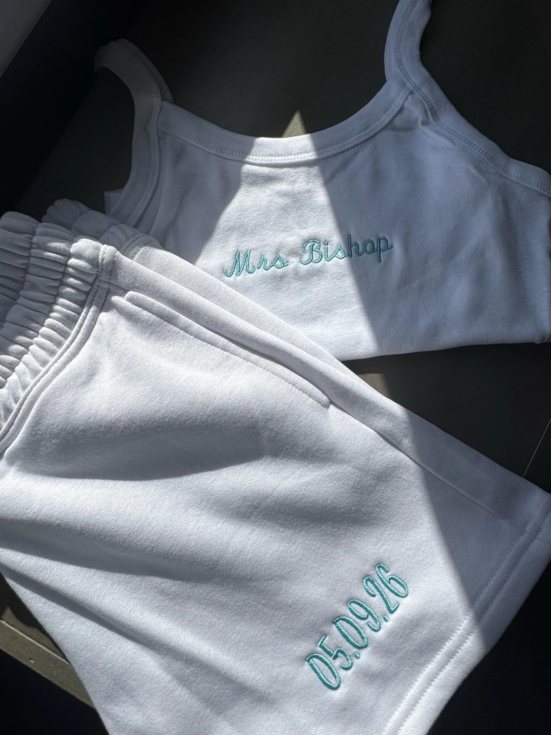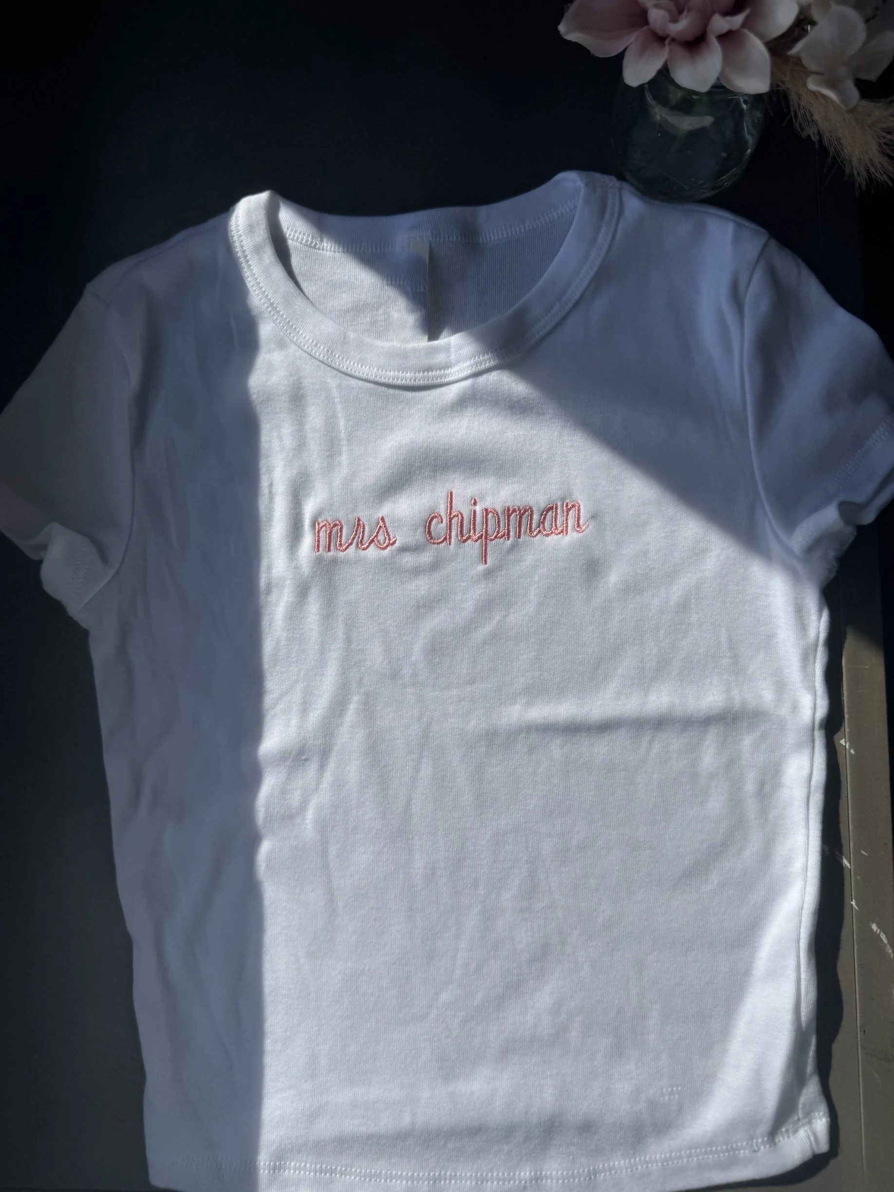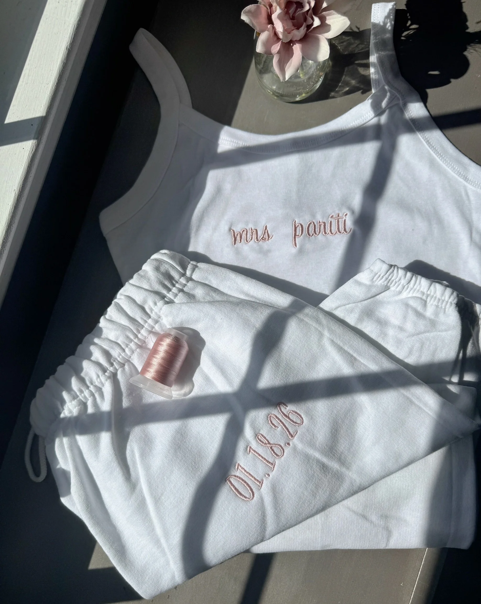 Custom Embroidered “ Mrs _______” racer tank top- womens