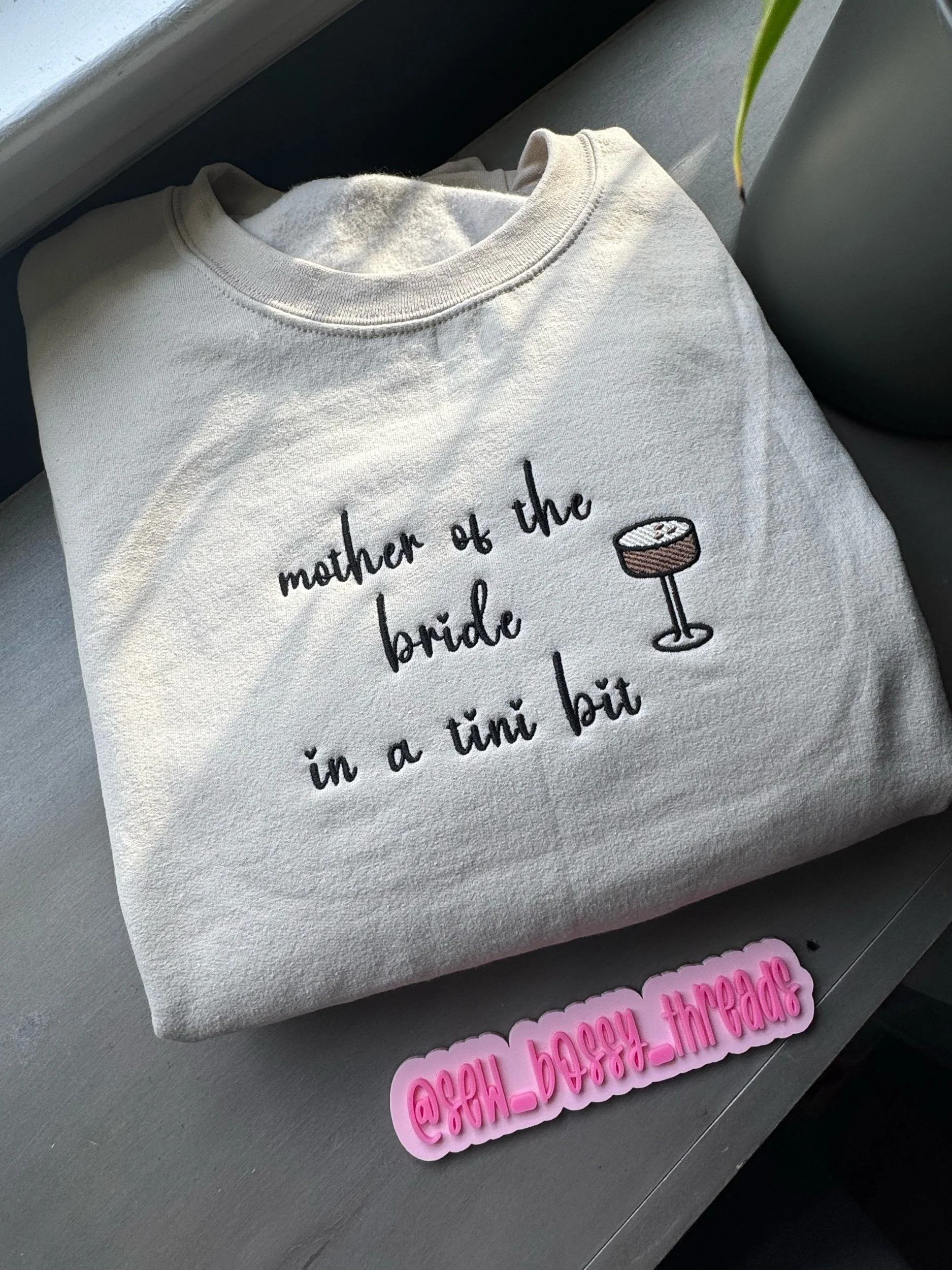 Image 1 of 1 Mother of the bride Crewneck $45.00 Custom embroidered Size: Small Medium Large XL Purchase Added! Custom embroidered