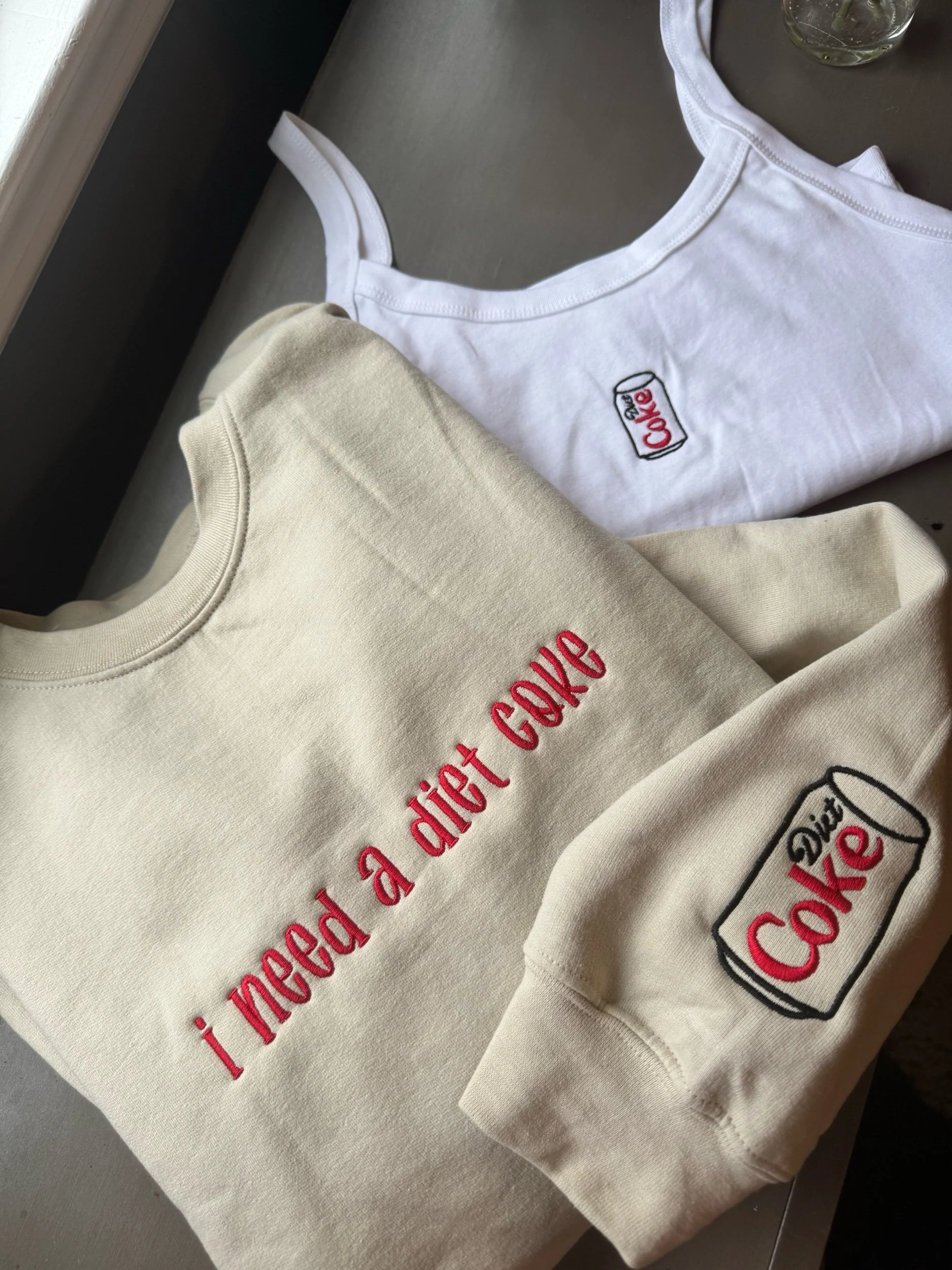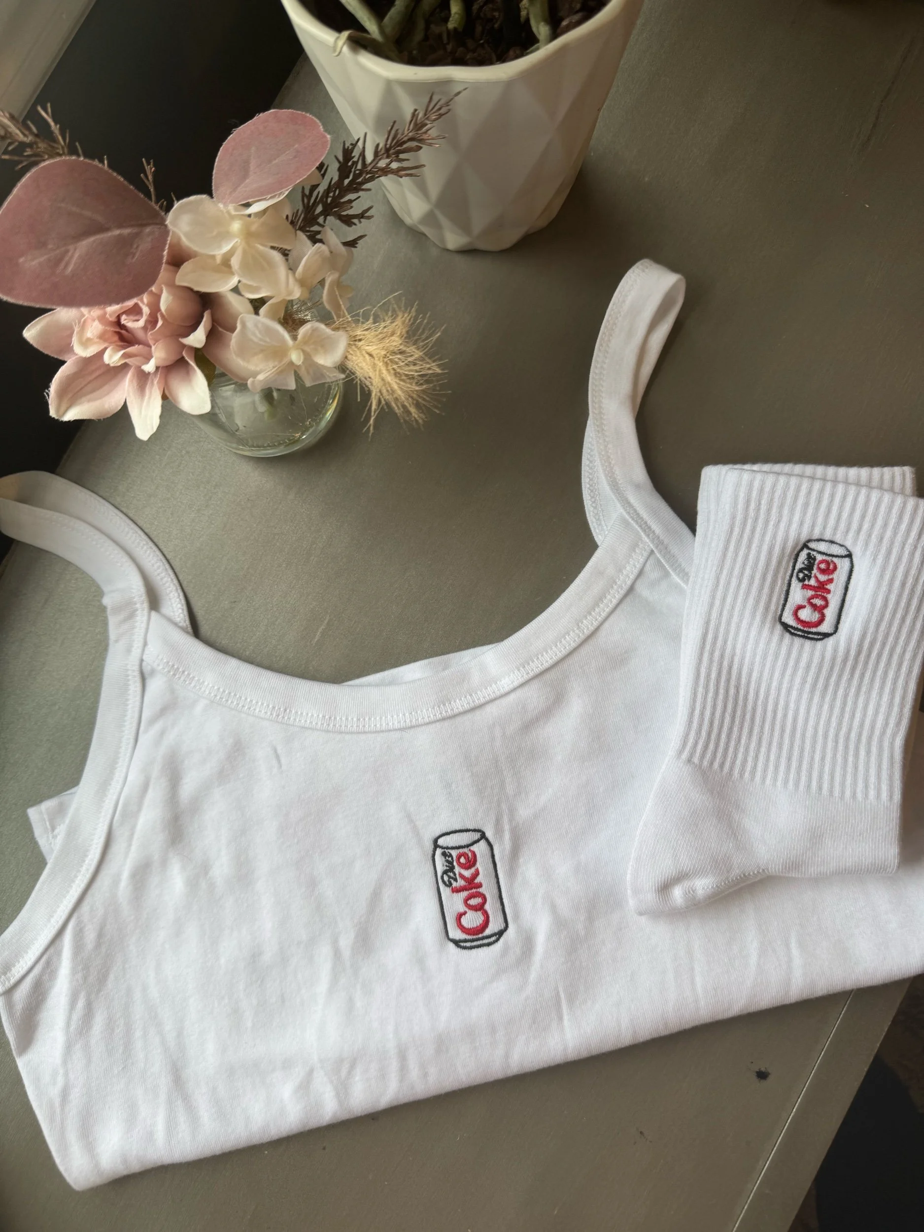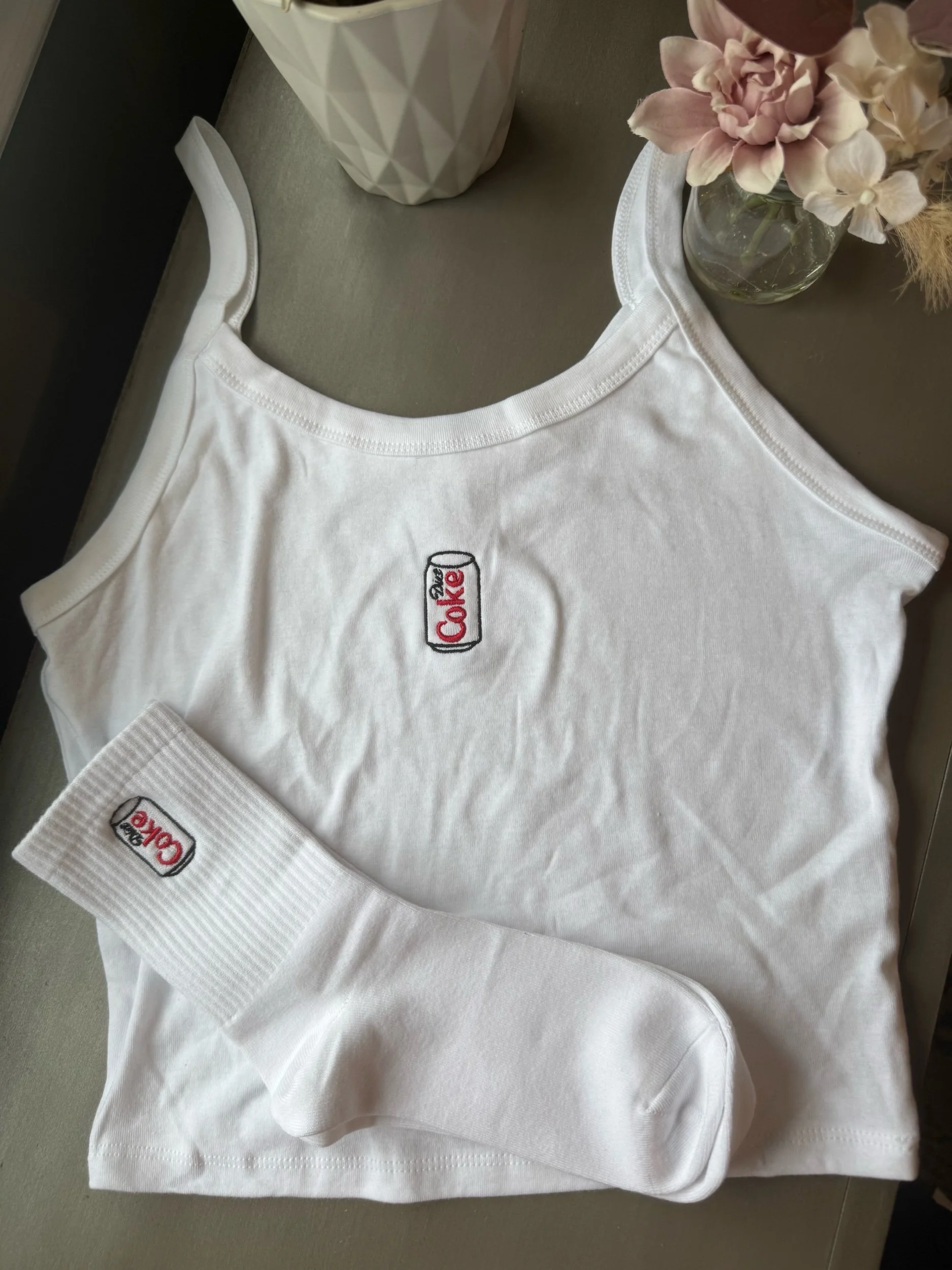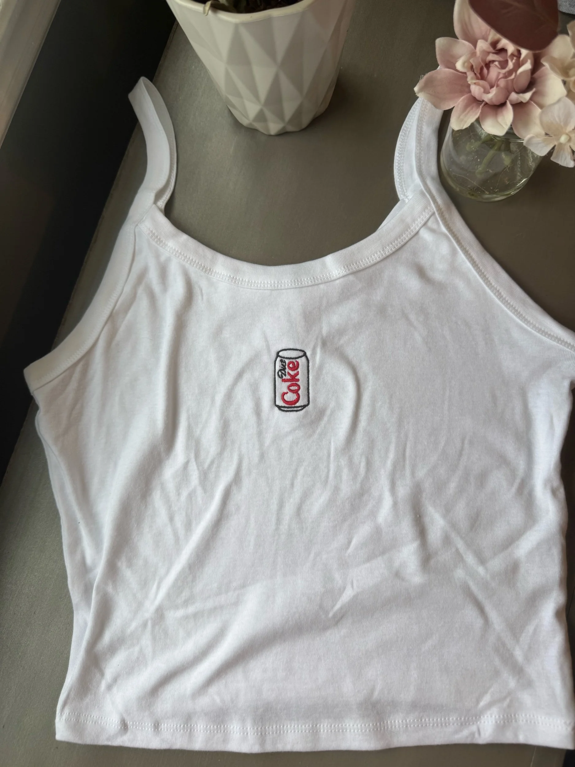 Image 1 of 4 Image 2 of 4 Image 3 of 4 Image 4 of 4 Diet Coke Tank from $35.00 Embroidered Diet Coke can tank ! Size: Extra Small Small Medium Large Extra Large 2XL Purchase Added! Embroidered Diet Coke can tank !